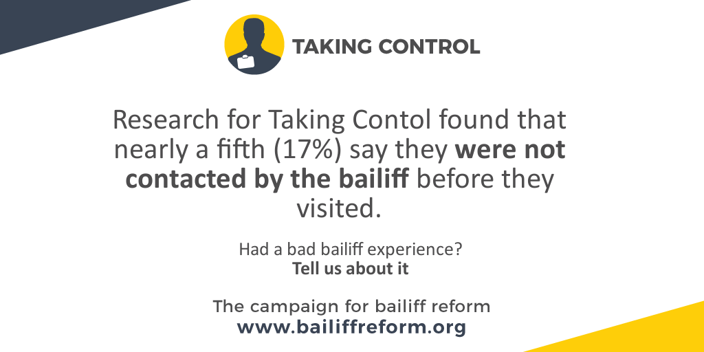1/Council sent Bailiff to my home address for an outstanding Business Rates Payment of £400.00 (my son's LTD CO), but I had to pay it because he threatened to take my car if I didn't hand over the cash (2015) 2/my landlord sent a bailiff my email address who demanded payment for my business (Different from 1/ above) I set up a payment plan with him, then, the landlord's asset manager told me things where on hold till we sorted things out, then 3/a new bailiff was appointed by the Debt Control department of my Landlord, who served an email which went to my private email junk box and was discovered on the evening he arrived to explain who he was (I had a phone call during the day informing me he was collecting a debt for the Cafe next door (also with the same landlord), when he turned up I was confronted by a large muscle man at my service counter demanding cash out of my wallet/till whilst I was cooking for customers, he scribbled out a control of goods notice (My first) and I could only get rid of him by paying some of the money 3/, there are more things, but the Bailiff would not be able to do what they do if the Council and Landlord (in my case) had to take responsibility if the agents they use are not in full compliance with the law. It is who uses the 'bailiff' that should be made accountable. under law they have been engaged and in some other circumstances (IE construction) the client MUST ENSURE their agent or sub-contractors follow the law and can be held accountable if they don't